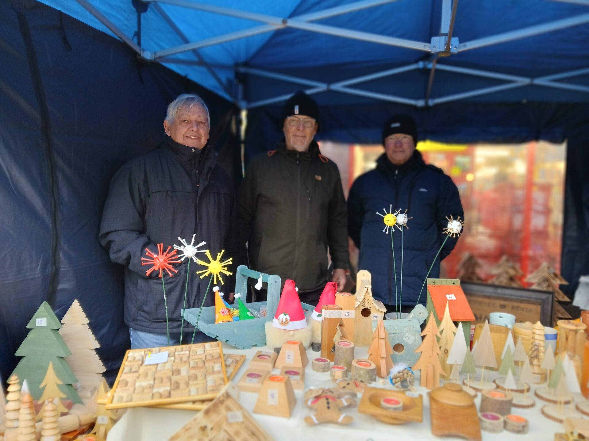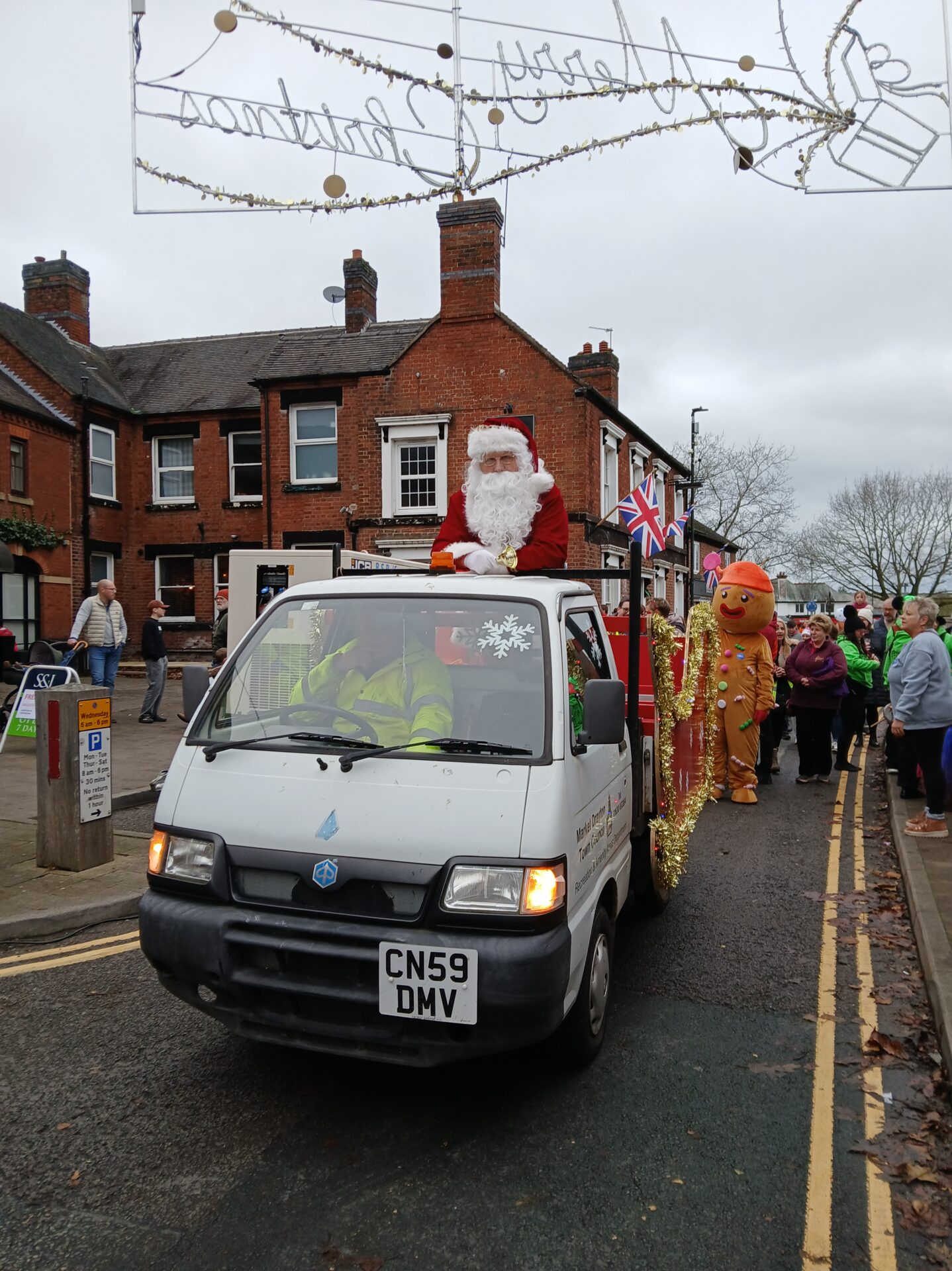 Pictured below are the Mayor, Cllr Tim Manton and the Town Crier.  Santa supported by Market Drayton Rotary.  The Mens Shed and Ginger Blandford Stalls